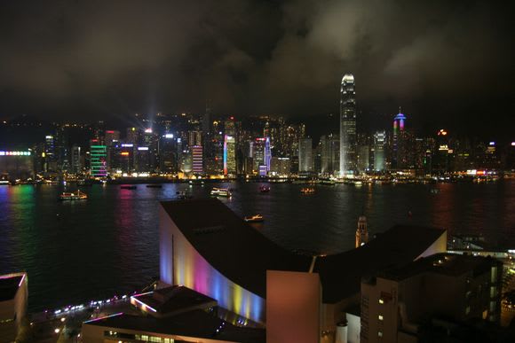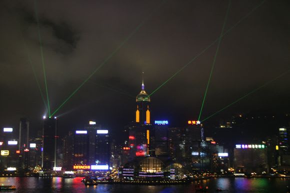 実はこちらの「九龍側」のビルも光り輝いているのですが、