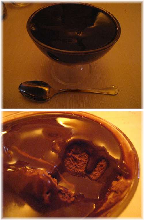 このホットチョコレートがかかったムースチョコ。
