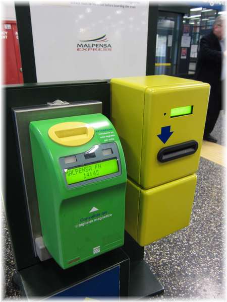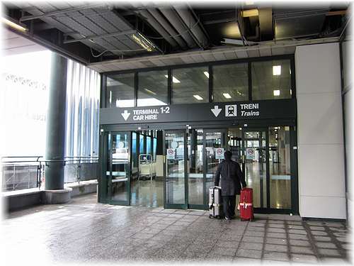 マルペンサエクスプレスが到着したホームに一番近い出入り口は裏口にあたります。