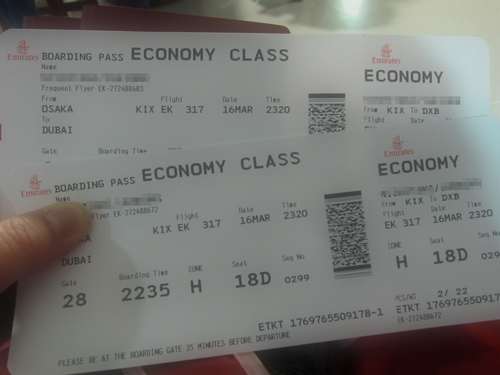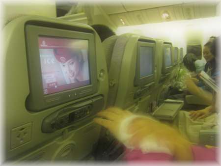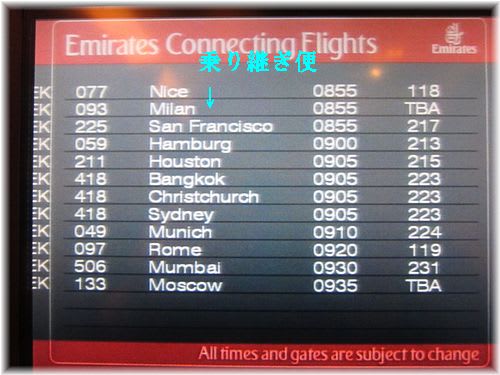 23時半のエミレーツ317便に乗り、経由地ドバイへ向け出発です。