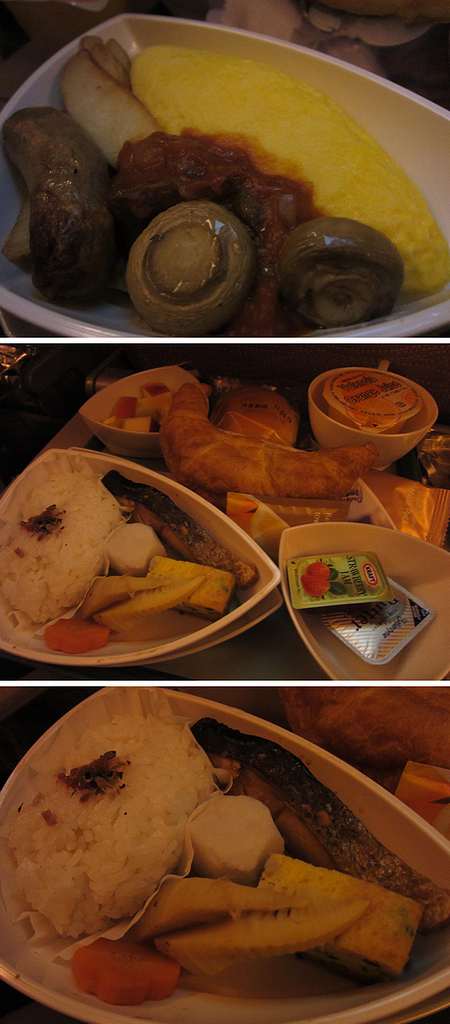 幾分か眠れた後、朝食と称する機内食の登場です。