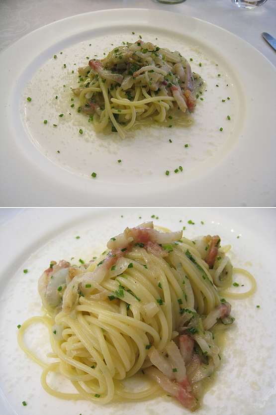 ざっくばらんに言うと、ファエッラ社のスパゲッティを玉葱とグアンチャーレで和えたもの。