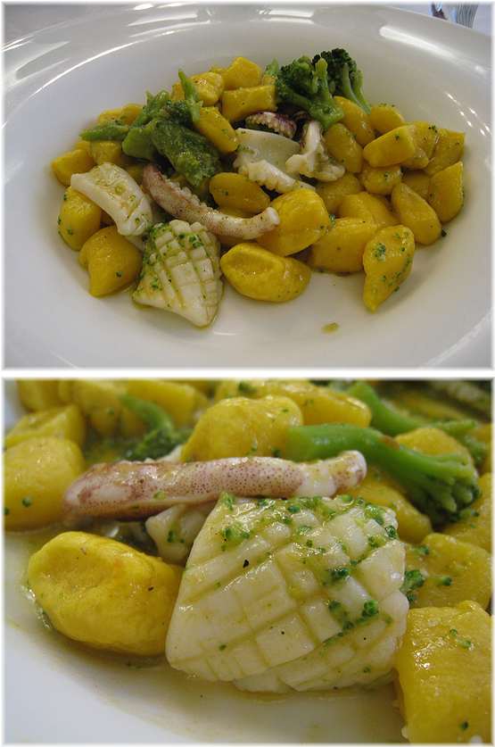 「Gnocchi di Patata con calamaretti, Bloccori e Cumino」 16ユーロ