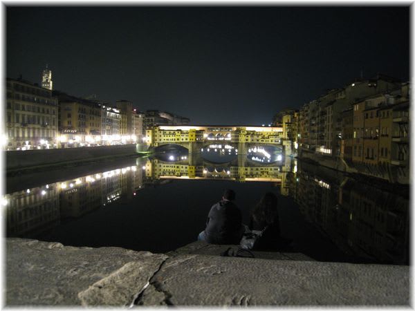 ポンテベッキオを眺めながら 愛を語るカップル。