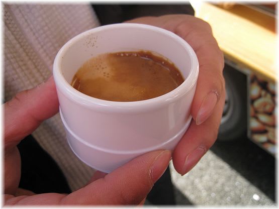 なんとか購入出来、向かいの珈琲屋さんで熱いエスプレッソを一つ。