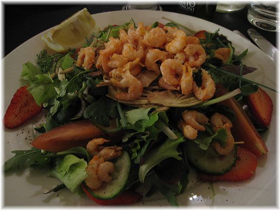 「Insarata di Misticanza e gamberetti nostrani e castraure 18ユーロ」