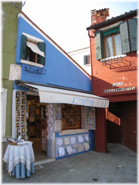 手前の「EMILIA」は高級ヴェネツィアンレース製品を販売しています。