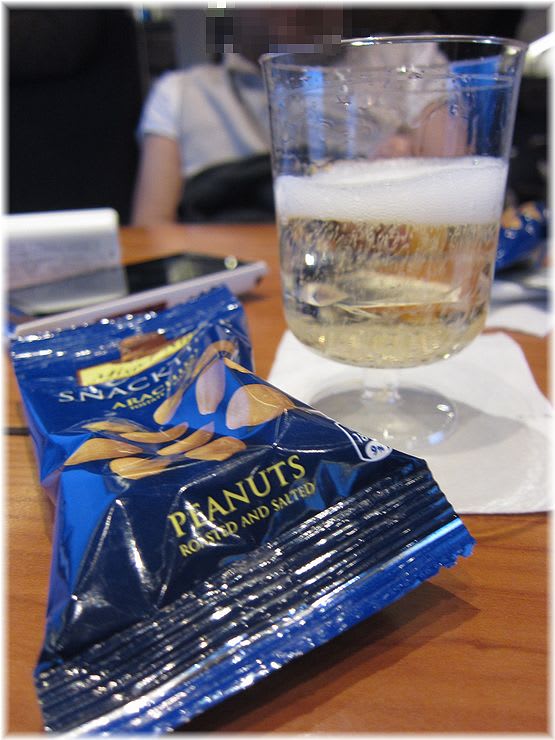 帰りも一等車なので、ピーナッツとドリンクがサービスされます。