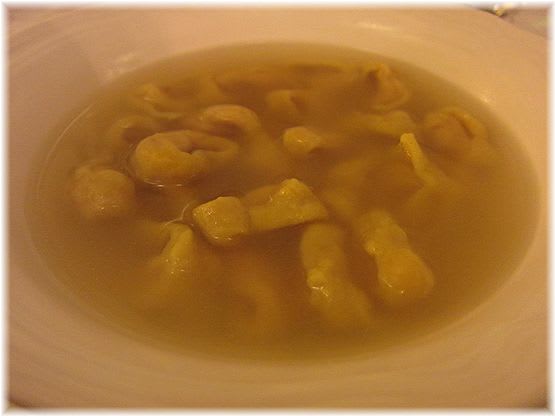 美しく上品なスープにたっぷりつかったトルテリーニパスタ。