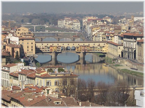 赤茶色の屋根、遠くで鳴る鐘の音・・・アルノ川に架かる数々の橋。