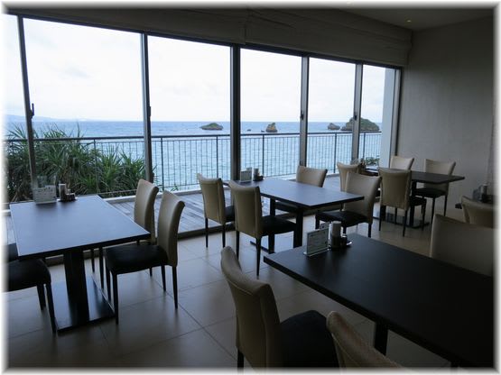海が見えるテーブル・・・もっと晴れていたらな~と思わずにいられない。