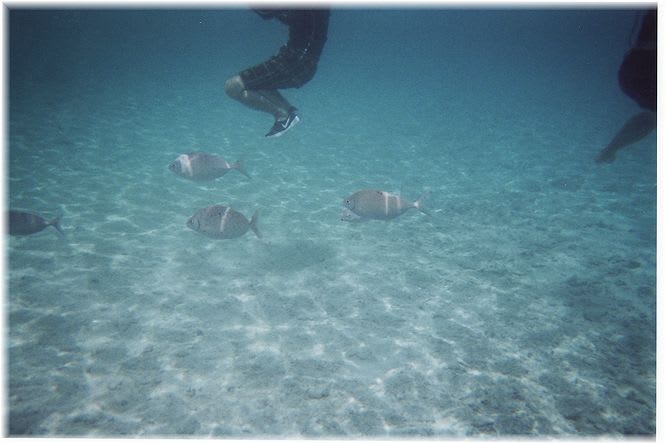 サンゴに足が触れるくらいには潜れますが、魚にはなかなか触れなかった。
