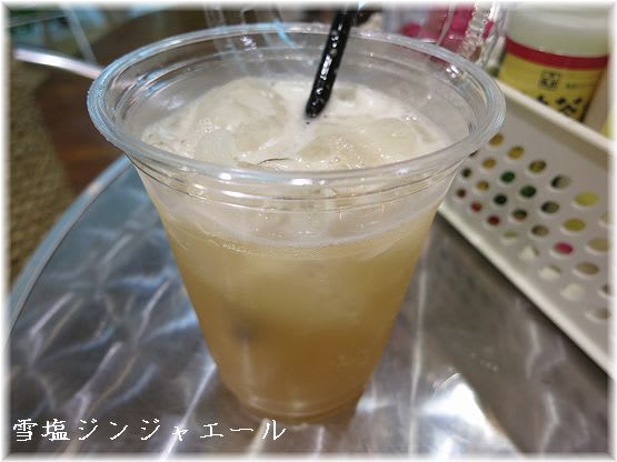 暑い外界から避難し、美味しい「雪塩ジンジャエール(400円)」を飲み、手をパックしました。