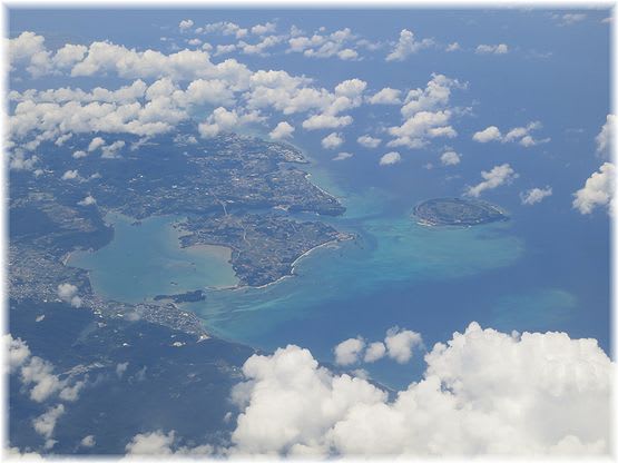 沖縄 沖縄旅行記 四日目 「機上からの景色」 ←LAST 40分遅れで小松に向け出発した飛行機。シートベルトサインが消え、窓から外を見下ろせば・・・素晴らしい景色。浅瀬はやはり綺麗な水色。深い場所はコバルトブルー。結構綺麗に地形が分かります。左上のクロワッサンの形の島が私が泳いだ「水納島」。あんな... 2012.08.05 沖縄