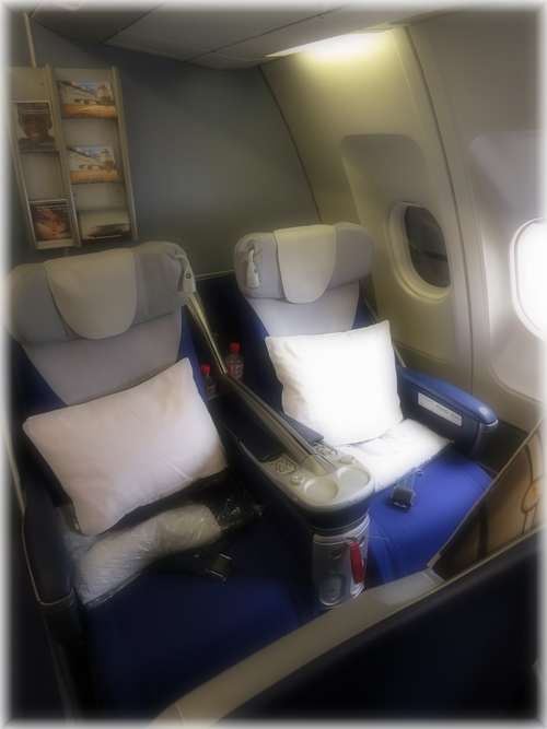 いつもの座席よりも広いけど、12時間のフライトはやはりしんどい。