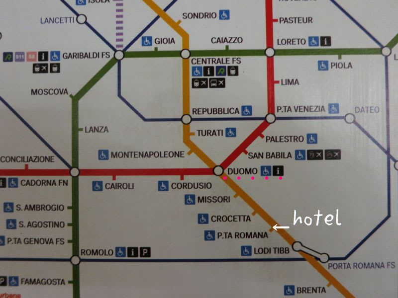 最寄り駅Porta Romana(ポルタロマーナ)からDuomo(ドゥオーモ)まで三駅。