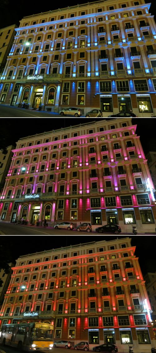 そしてその裏にひかえているピンクの建物が、ジェノヴァでの滞在ホテル「Grand Hotel Savoia」です。
