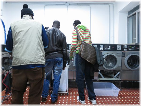 30分くらいで洗濯終了するので、しばしぼーっと眺めていると、アフリカ系移民の男性が入れた洗剤の量に驚く。