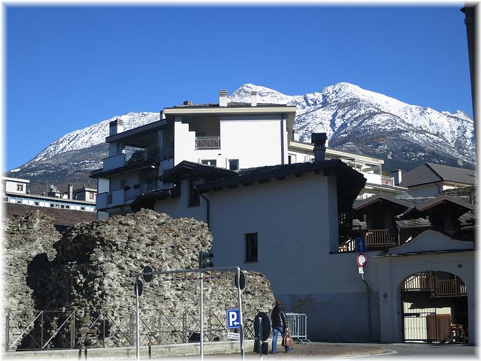 雪のシーズンなら、スキー客で賑わう山間の街アオスタ。