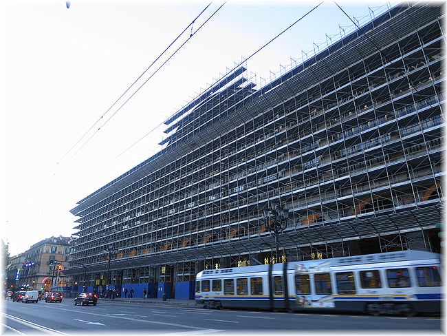 ホテルから駅までバスに乗り、ゆっくりとトリノ駅の外観を見ると、きっちり工事中。