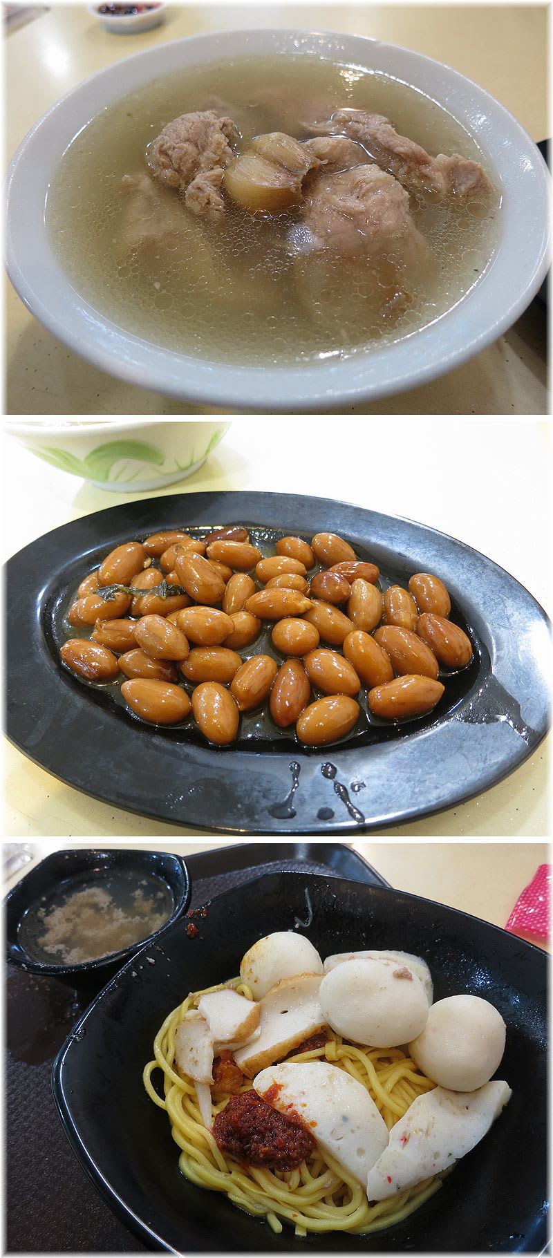 「肉骨茶(バクテー)」と「フィッシュボールヌードル(汁無し)」「豆」