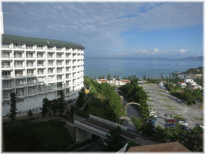 隣接する白い建物は姉妹ホテルである「沖縄かりゆしビーチリゾートオーシャンスパ」だ。