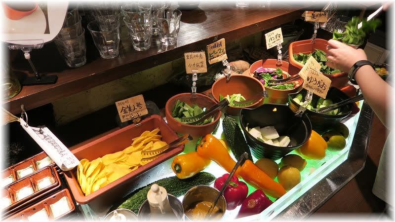 沖縄ならではの野菜が食べ放題(テーブルチャージ300円に含む)。
