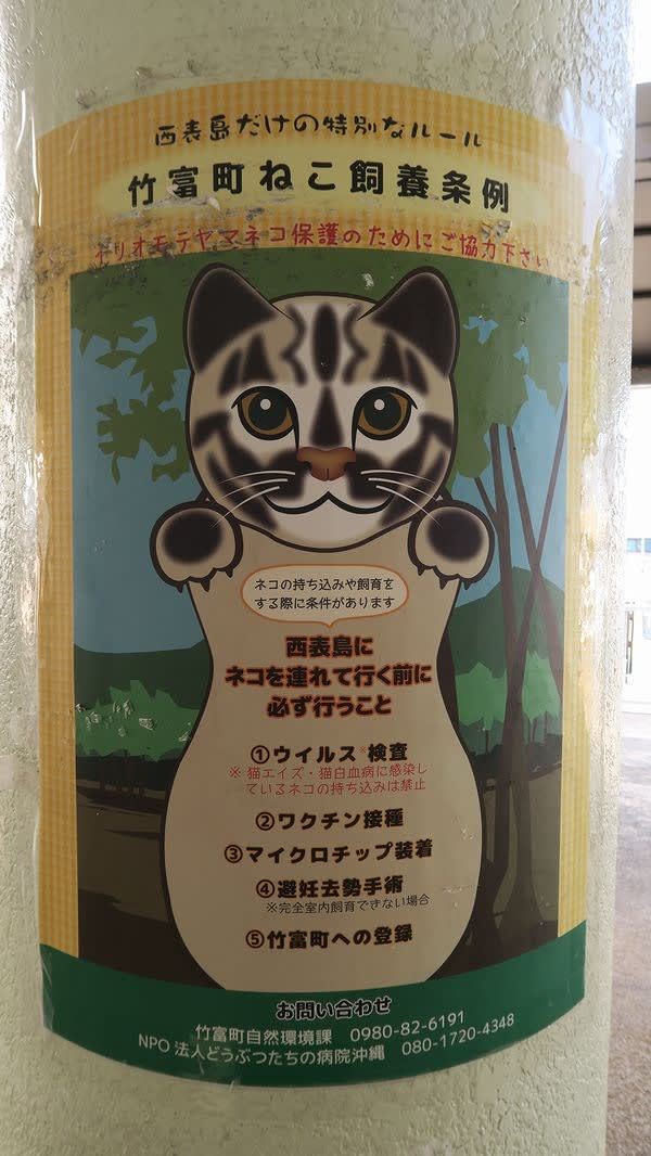 ターミナルの柱には「ねこ飼養条例」のポスターが。