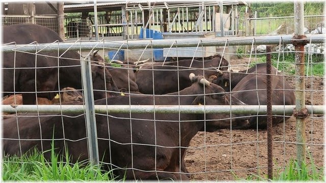 店自体は細いダート道を行くのですが、途中牛たちの出迎えもあったり。
