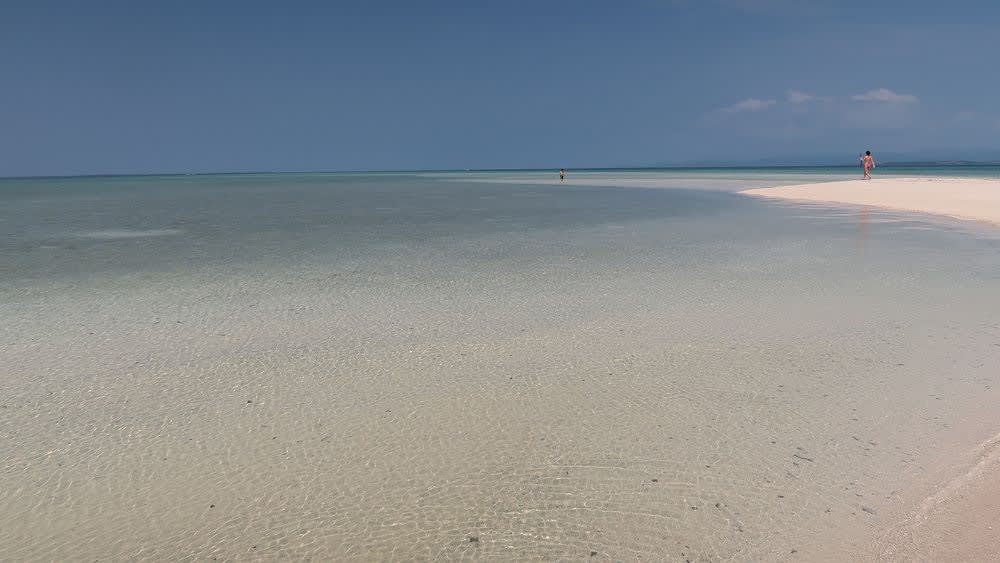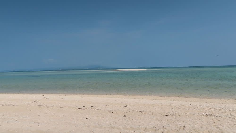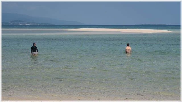 満ち潮な為、小さな砂の島がぽっかり浮かんでいます。