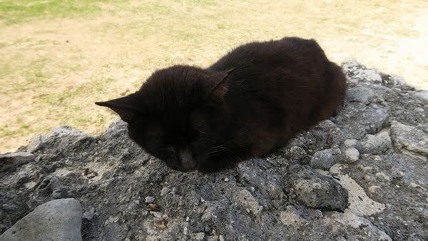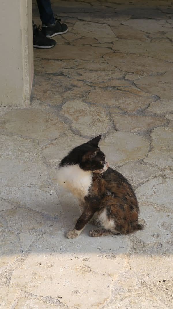 後から聞くと、この島の猫たちは近親交配が多く、病気がちらしい。