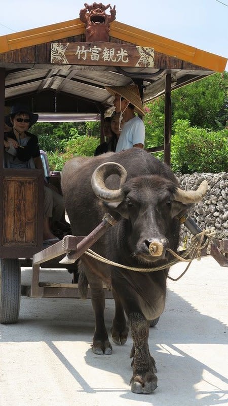 途中、念願の「水牛車」と遭遇。