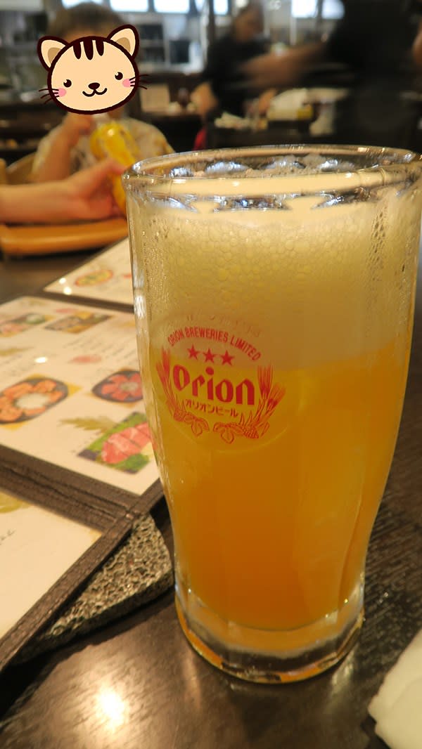 またしてもフルーティなトロピカルビールをオーダーする私と、ここはどかんとオリオンの瓶ビールをオーダーするI村さん。←飲む気満々ですな。