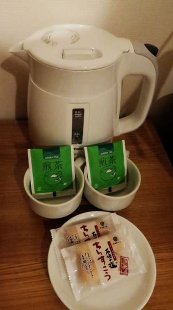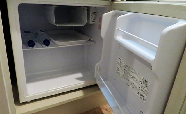 小さなダイニングテーブルと椅子、クローゼット、ミニキッチン、PCデスク、テレビ、サイドテーブルが完備されていて、特に困ることはない。