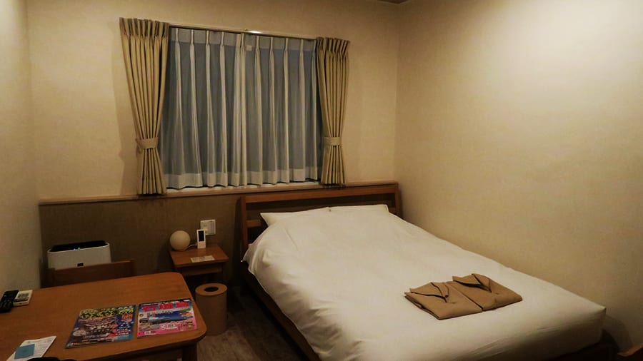 ベッドはダブルサイズで、マットはしっかり固いタイプ。