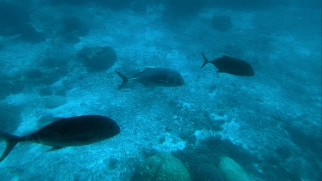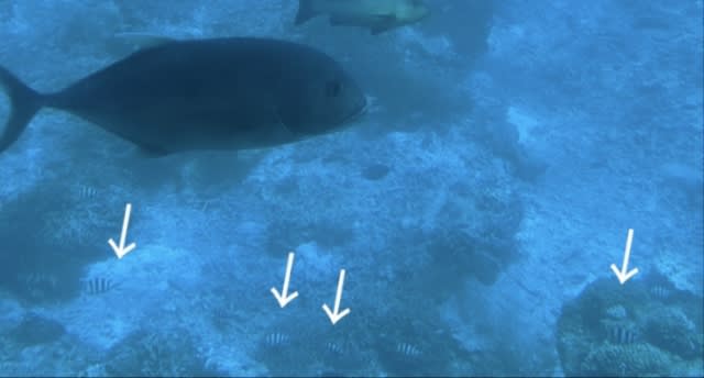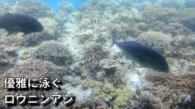 大きな魚影?はロウニンアジで、船が餌付けしてるからどこにでも付いてくる。そしてデカい。⇐栄養豊富