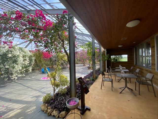 テラスに出ると年中楽しめるトロピカルな花々が咲き誇っていました。