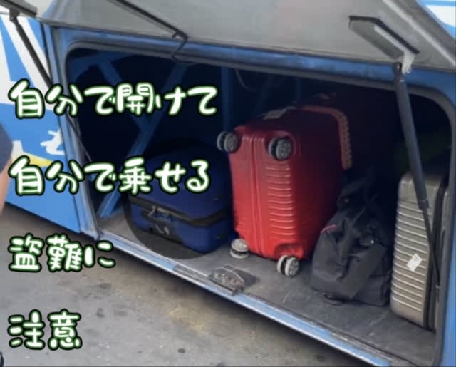 わくわくしながら乗り込むんですが、まずはスーツケース(ヘビー級)二個をバスの下の荷物入れにINしなくてはなりません。