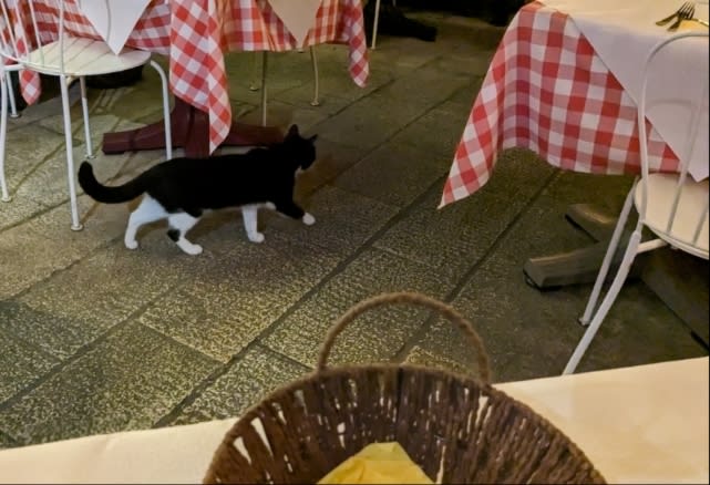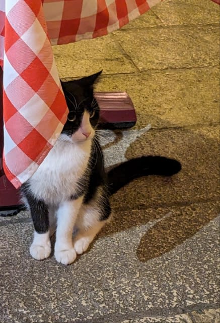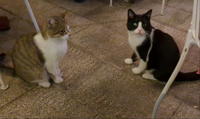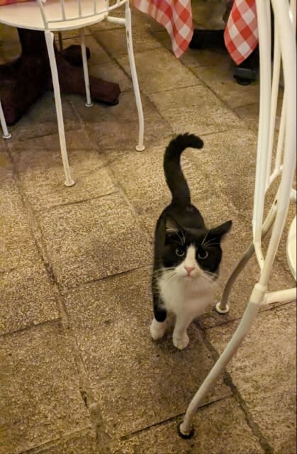 計六匹の猫たちがテラス席のあちこちを移動する様を見ながら、二人して悶えていました。
