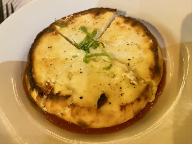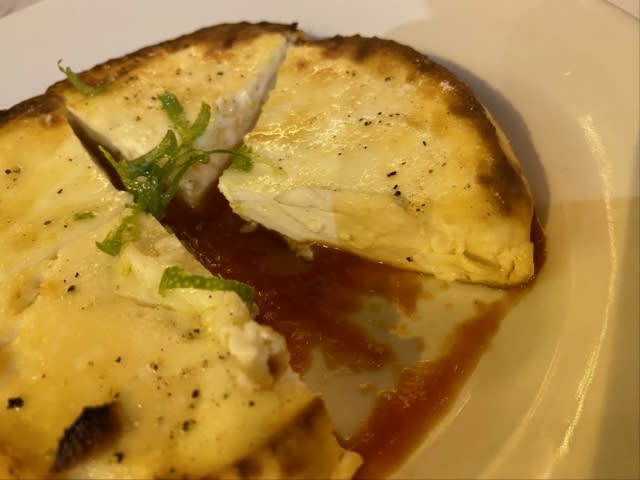 フレッシュなトマトソースに焼いたリコッタチーズを乗せて