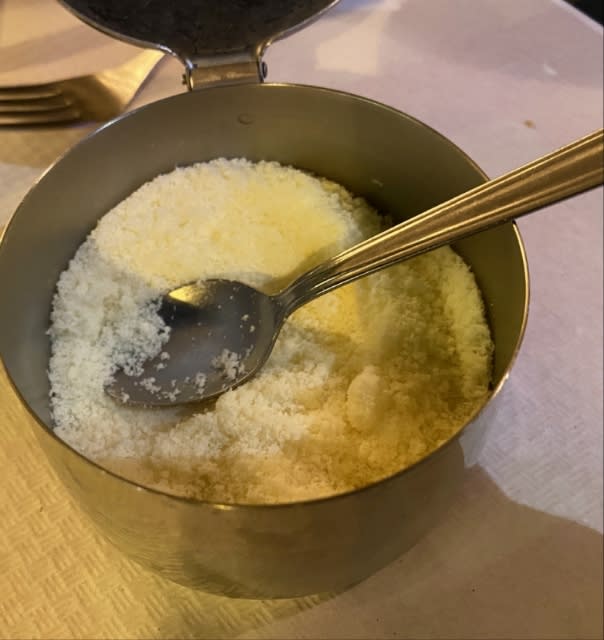 たっぷりパルメザンチーズを乗せて、まろやかな風味に変化させます。