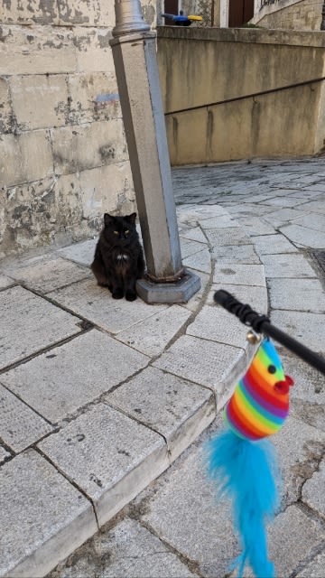 主人が電動キックボードのアプリに苦戦している時、私は猫探しを始めました。