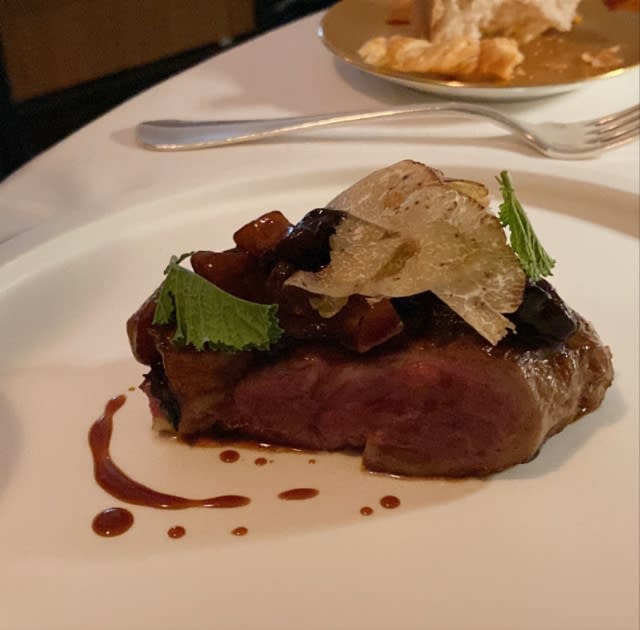 シチリアのオリーブオイルとアイスクリーム、黒トリュフを添えて。