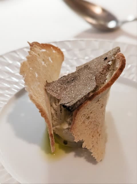 さくっさくの薄いパンに挟まれたアイスクリーム(塩?)の冷たさと黒トリュフの香り。