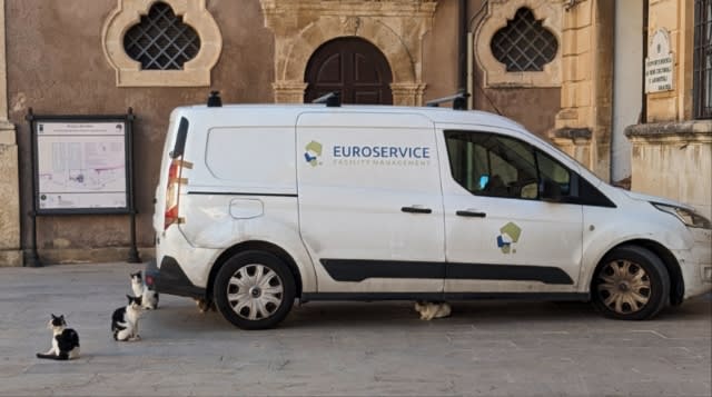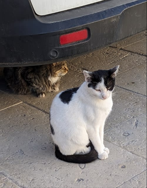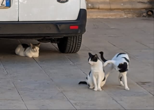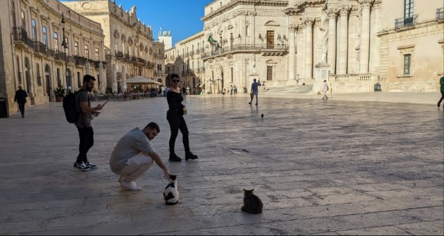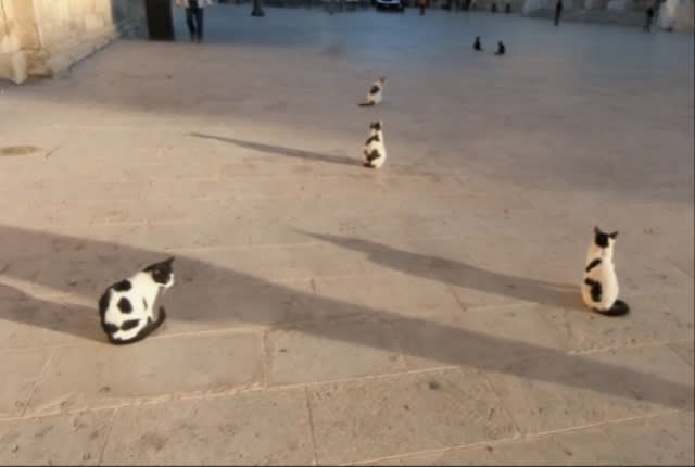 大理石が敷き詰められた広場の片隅に、めちゃくちゃ可愛い猫たちがたむろしてるっ!!!