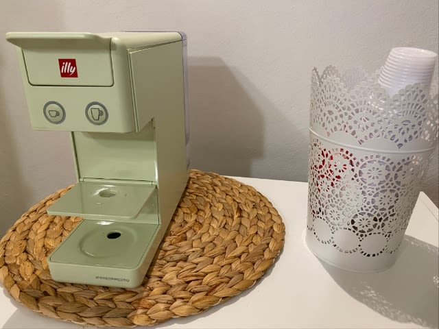 コーヒーメーカー、どでかい冷蔵庫、皿、グラス、調理器具等など。