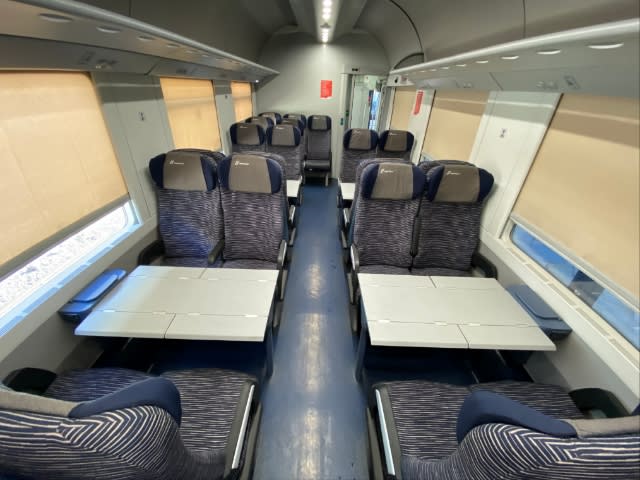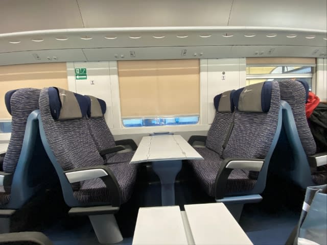 さて、列車はそこまで新しくありませんがテーブル&コンセント付きはありがたいですね。