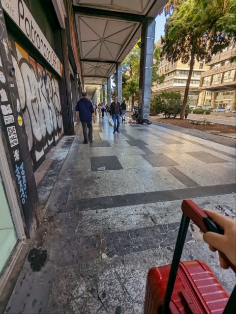 👋アパートに別れを告げ、タクシー乗り場があるウンベルティーノ橋近くまでスーツケースを転がします。