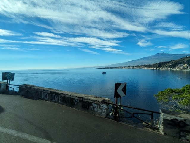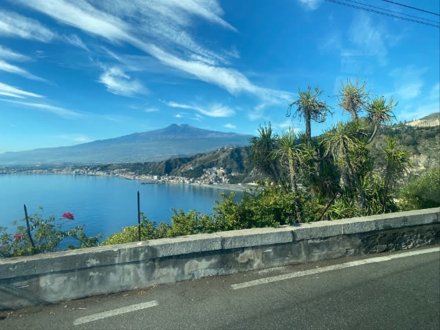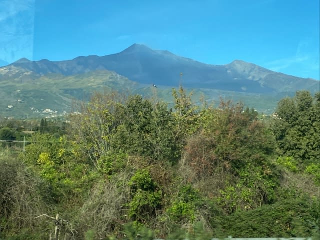 高速道路?からもエトナ火山がよく見えます。