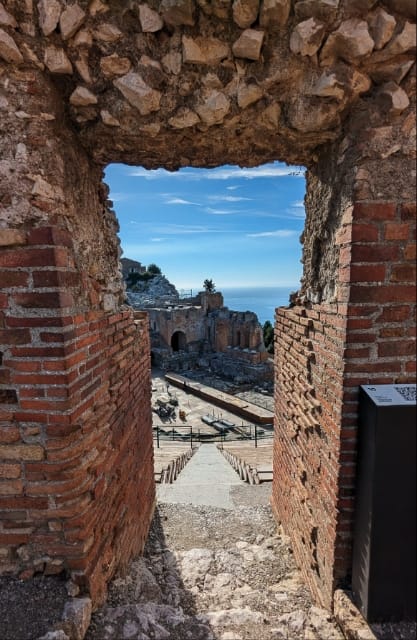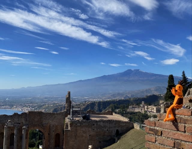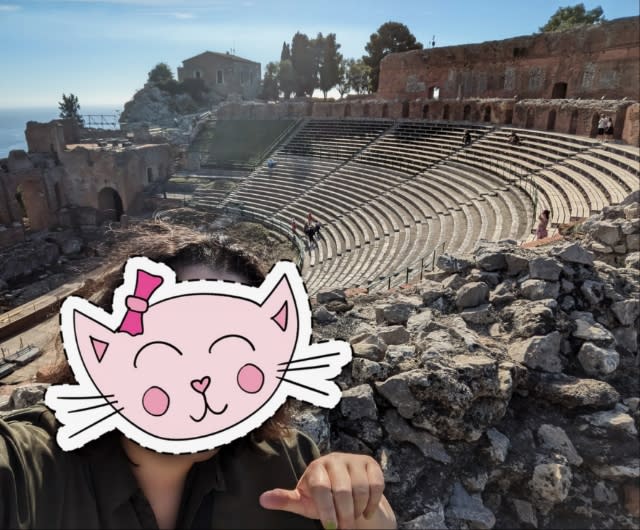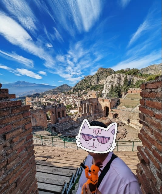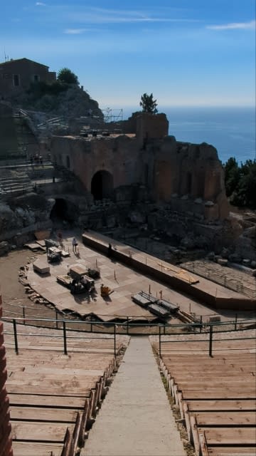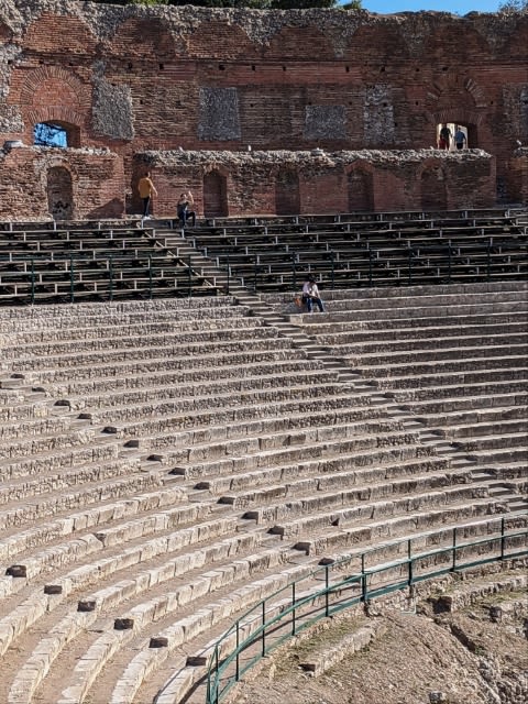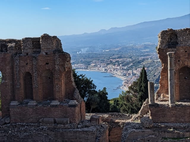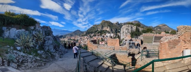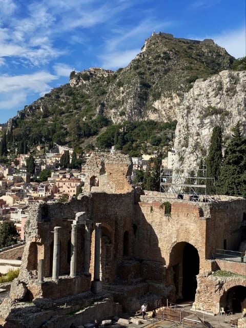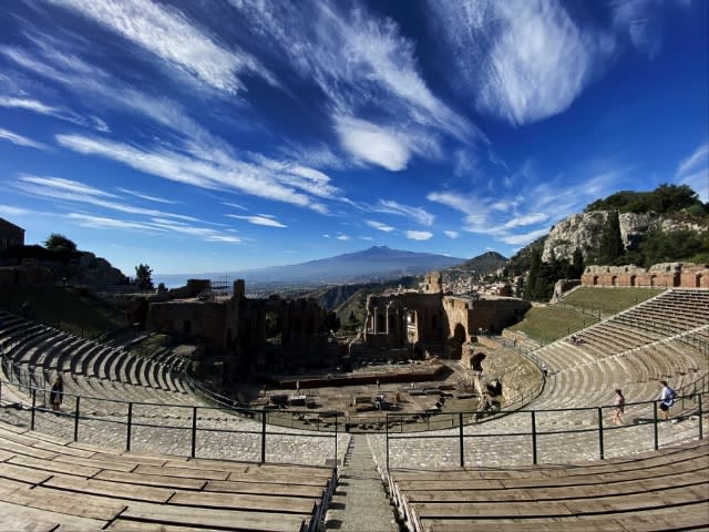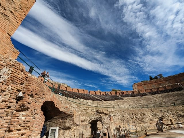 実はシラクーザにも同じく古くて大きな劇場があり、我々はそこを訪れていませんが、タオルミーナは二番目に大きな劇場とのことなのですごく楽しみです。